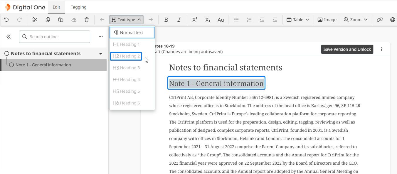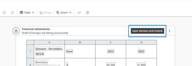 All changes are saved automatically as you update the content. To unlock the document, simply click the "Save Version and Unlock"-button at the top of the document.