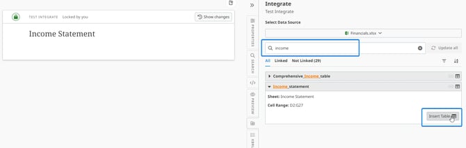 - Find the table or content you wish to add, then click Insert Table/Text. The content will appear at the position of your cursor.