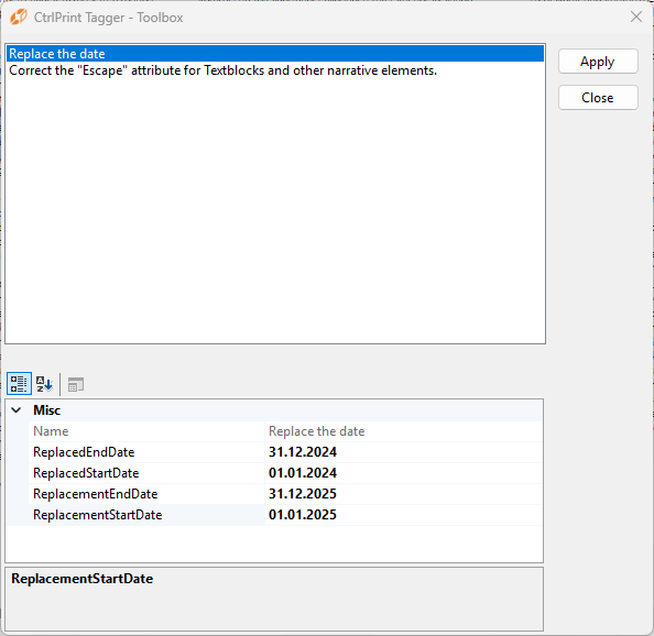 In the pop-up, click on "Replace the date" and fill in your desired replaced start and end date as well as your desired replacement start and end date and then click Apply.