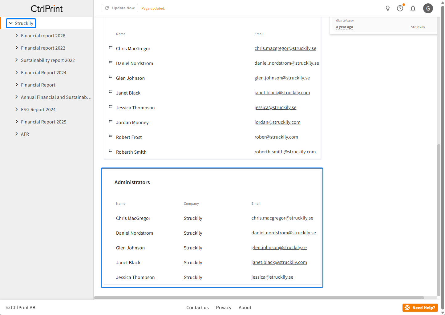 A list of your company's Administrators is found on the company page when you are logged into CtrlPrint: